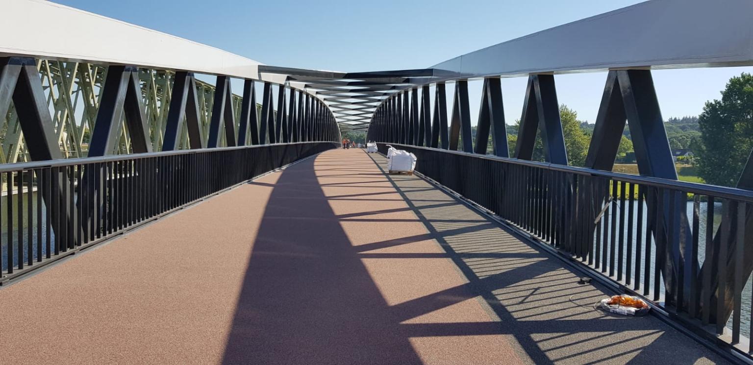 Om gemakkelijk en snel op en neer te kunnen fietsen van Cuijk naar Nijmegen, wordt een snelle fietsroute aangelegd, het MaasWaalpad. Een essentieel onderdeel van deze route is een fiets-, tevens wandelbrug over de Maas. Op de stalen hoofdoverspanning van de fietsbrug werkt VLAQ Groep op dit moment met de VS 120 Epoxy slijtlaag. Totaal ca. 880 m2 . De betonnen aanbruggen van deze brug worden ook nog voorzien van een slijtlaag. Veilig naar de overkant!